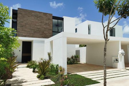 Moderna casa en venta con 1 recámara en PB y 3 en PA, cocina equipada, alberca, cochera techada y portón.